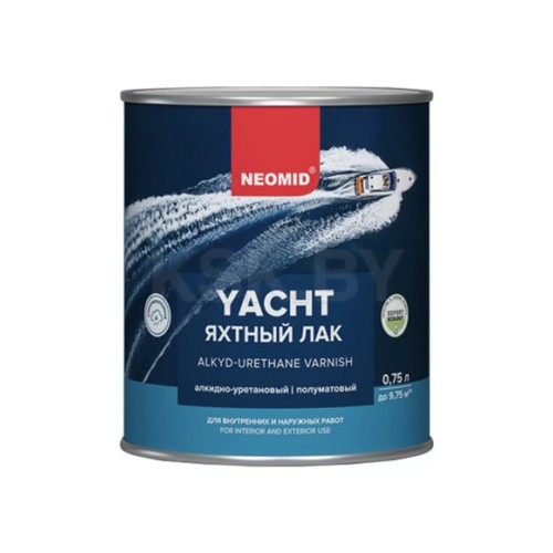 «NEOMID яхтный лак» – атмосферостойкий и износостойкий лак на основе алкидно-уретановой смолы для наружных и внутренних работ, предназначен для защитно-декоративного покрытия любых деревянных поверхностей, в том числе террас, фасадов, дверей, оконных рам, паркета, мебели, лестниц внутри и снаружи помещений. Образует высокопрочное, атмосферостойкое и износоустойчивое покрытие, стойкое к воздействию воды и бытовых моющих средств. Сохраняет и подчёркивает естественную структуру древесины. Содержит специальный двойной УФ фильтр – увеличивает устойчивость покрытия к солнечному излучению.
