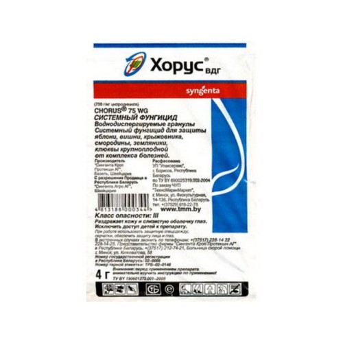 Системный фунгицид Хорус ВДГ Syngenta предназначенный для защиты яблони от парши и ягодных культур от комплекса болезней. Отличается великолепной эффективностью при низких температурах.